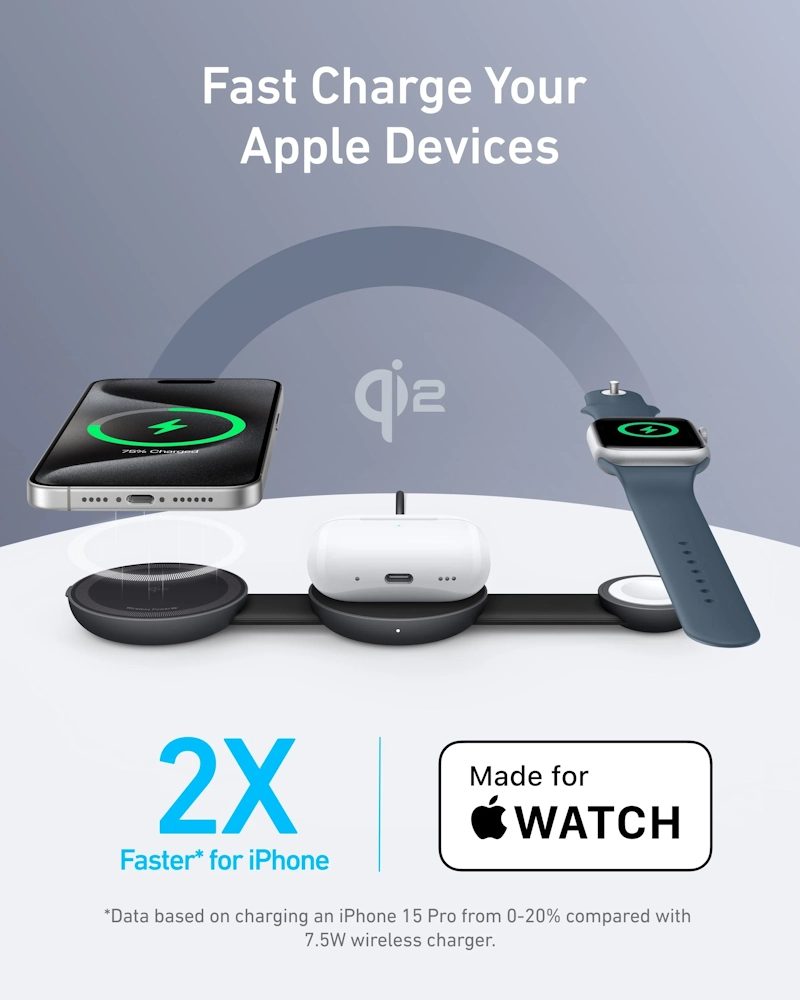 Anker MagGo Wireless Charging Station (3-in-1, Foldable Pad) Black