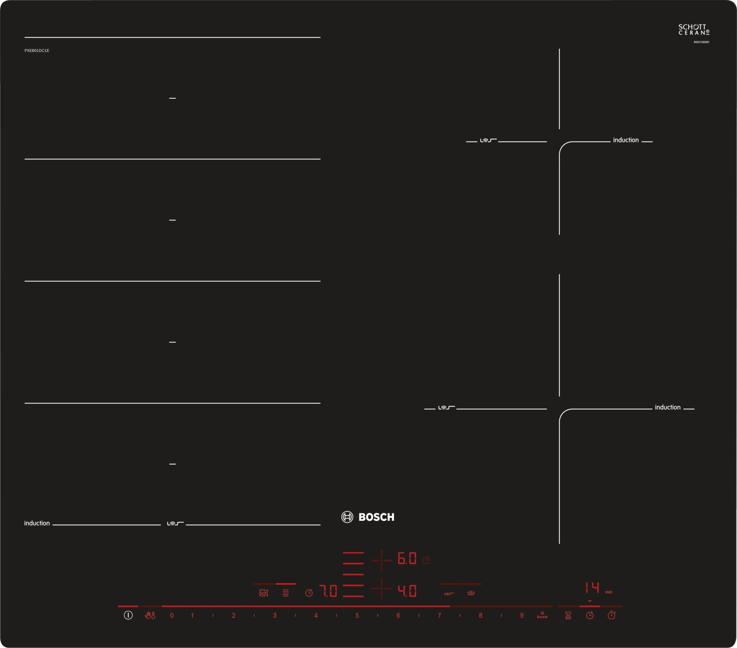BOSCH indukcijska ploča PXE601DC1E Serie 8|, 60 cm, bez okvira, FlexIndZone, DirectSelect Premium, ES
