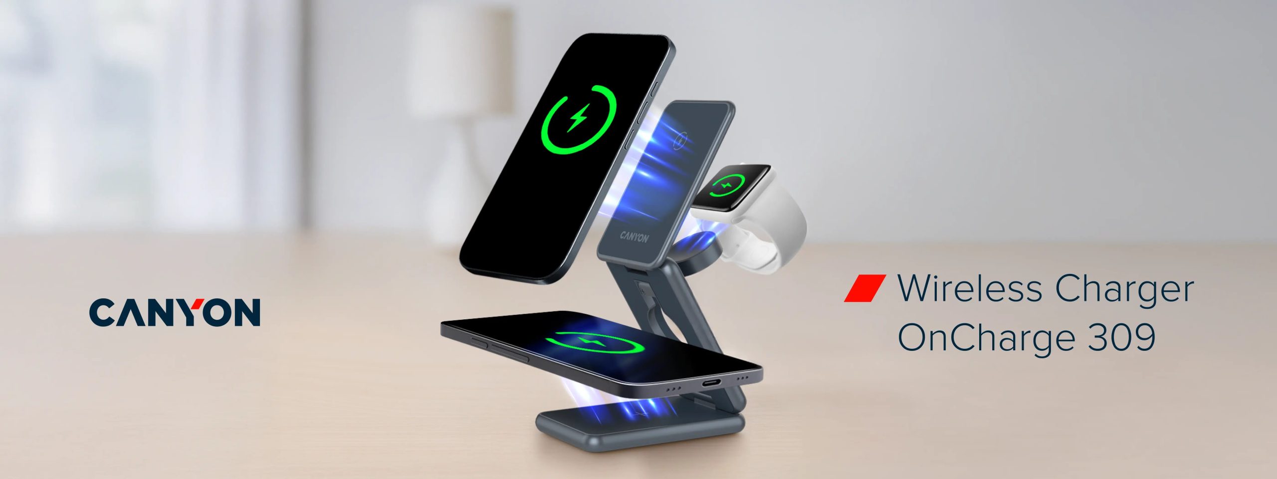 CANYON Foldable wireless charger OnCharge 309 15W 3in1 Metal
