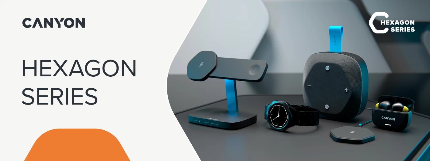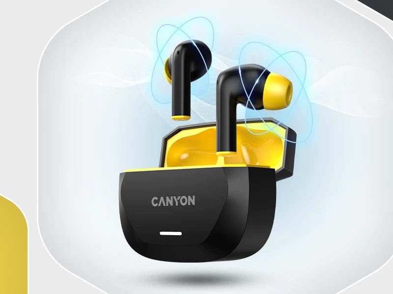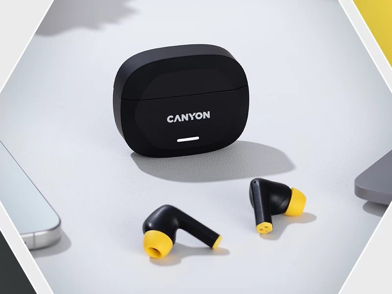 CANYON headset HEXAGON 7 TWS ANC+ENC Wireless Charge Black Yellow