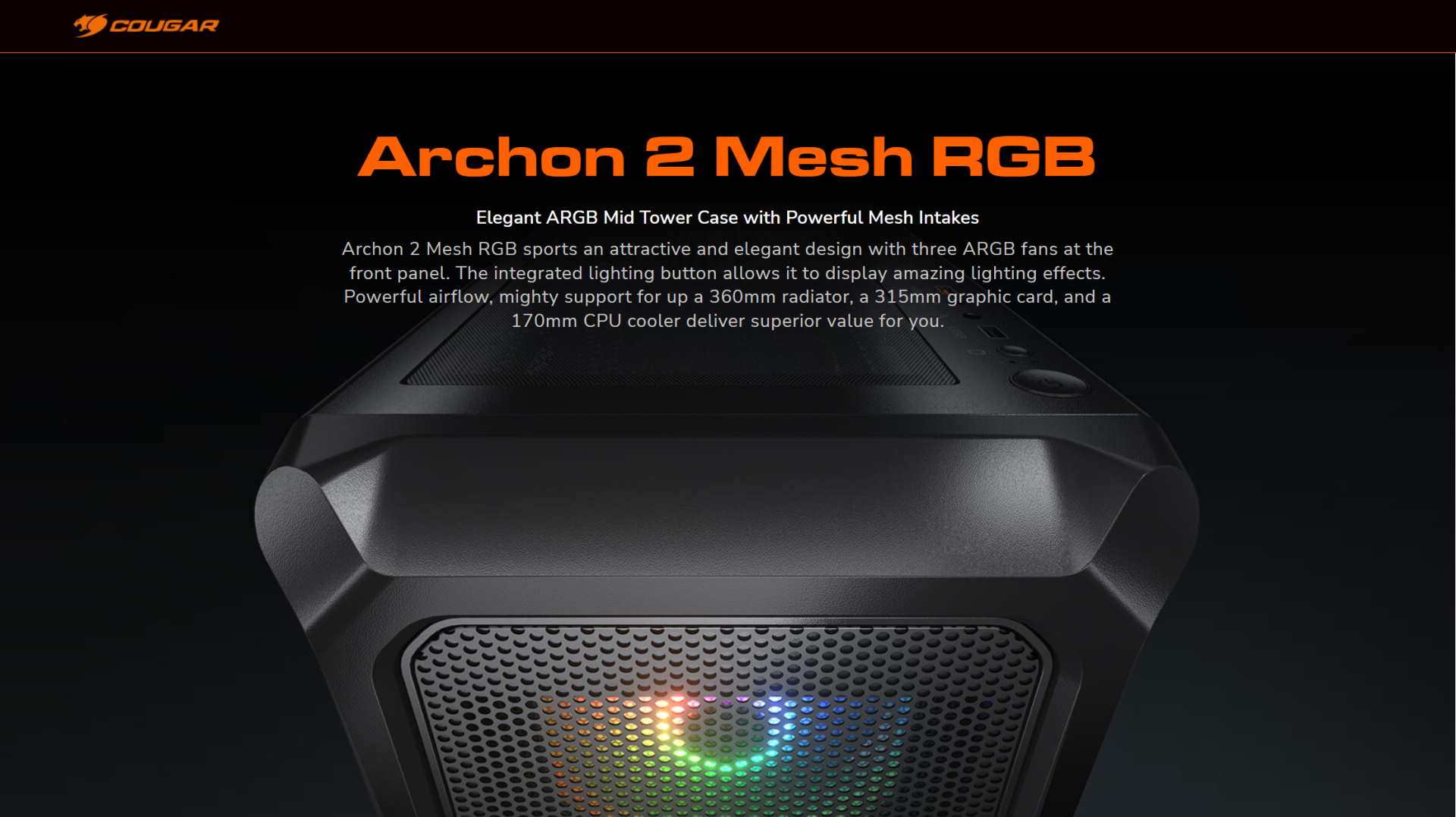 COUGAR Archon 2 Mesh RGB PC Case, Mid Tower, Black