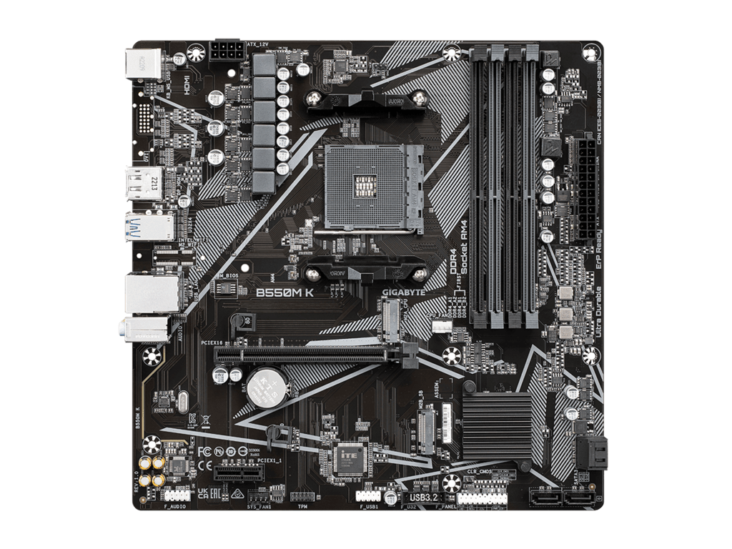 Gigabyte MB [B550M K]; AM4; 4xDDR4 up to 128GB/4733MHz; 2xM.2; 4xSATA; 8xusB; DP; HDMI; PS2; mATX