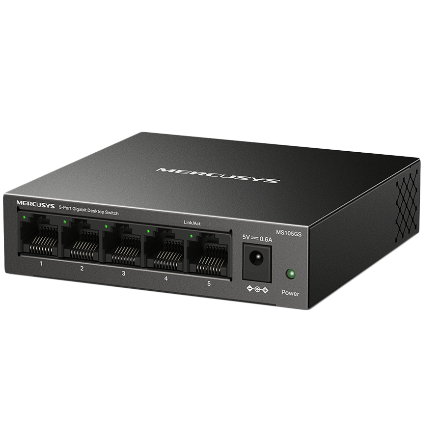 Mercusys MS105GS 5-Port Gigabit Desktop Switch, 5× Gigabit Ports, Desktop Steel Case, Wall Mounting, Plug and Play, Power Saving, Compact design, Green Ethernet technology, Silent