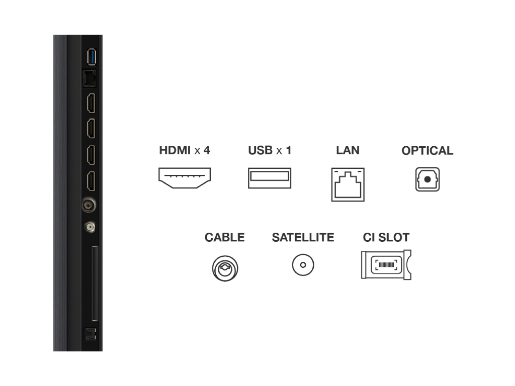 TCL 98”C6K 4K QD-Mini LED TV; 144Hz native display; Matte HVA Panel; Google TV; Game Master; Dolby Atmos; Onkyo 2.1; HDR Premium; HDR10+ HDR10 HLG; Netflix Youtube Amazon Prime Apple TV; Chromecast & T-cast; HDMI: 4x 2.1; USB: 1x 3.0;